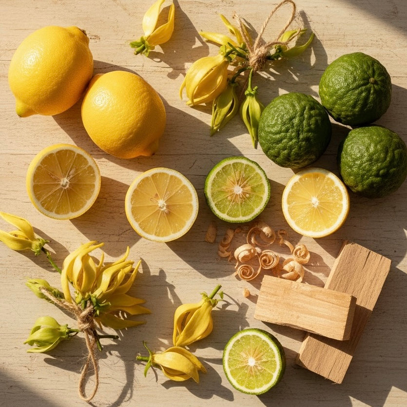 Enriched with shea butter, coconut oil, and olive oil to gently cleanse and moisturize. We add only pure essential oils—no synthetic fragrances—so you get a fresh, clean scent from real ingredients like lemon, ylang ylang, and bergamot. Nothing extra, just what your skin needs.
